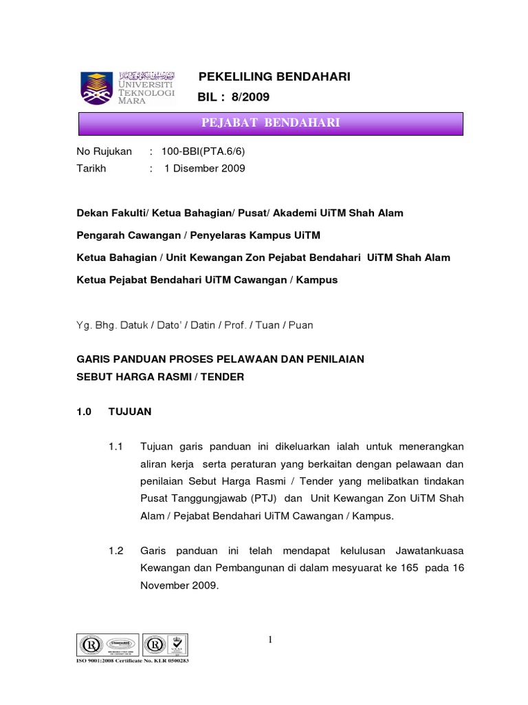 Garis Panduan Pelawaan Tender Pdf